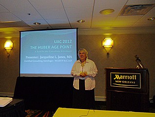 The Huber method is also represented at the UAC. Jacqueline Janes, a psychotherapist and astrologer from Connecticut, gives a talk about the Huber age point. Although she has not visited a Huber school, she has used both the Huber horoscope drawings and the age point for many, many years. Some time ago, she has figured out for herself in her consulting practice how valuable the age point can be. The approximately 35 participants, who visit her talk at the UAC, have some trouble with the calculation of the age point, but its interpretation and the colored aspect patterns find great appeal. Some participants would like to download a program for the calculation of age point to their iPad.